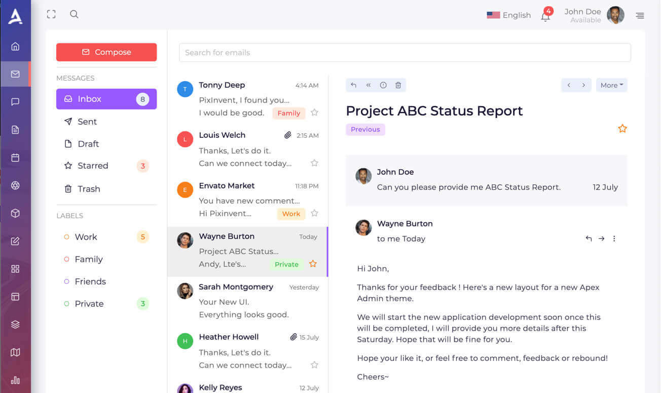 Apex - Angular 13+ HTML bootstrap admin template provides well organised folder structure,